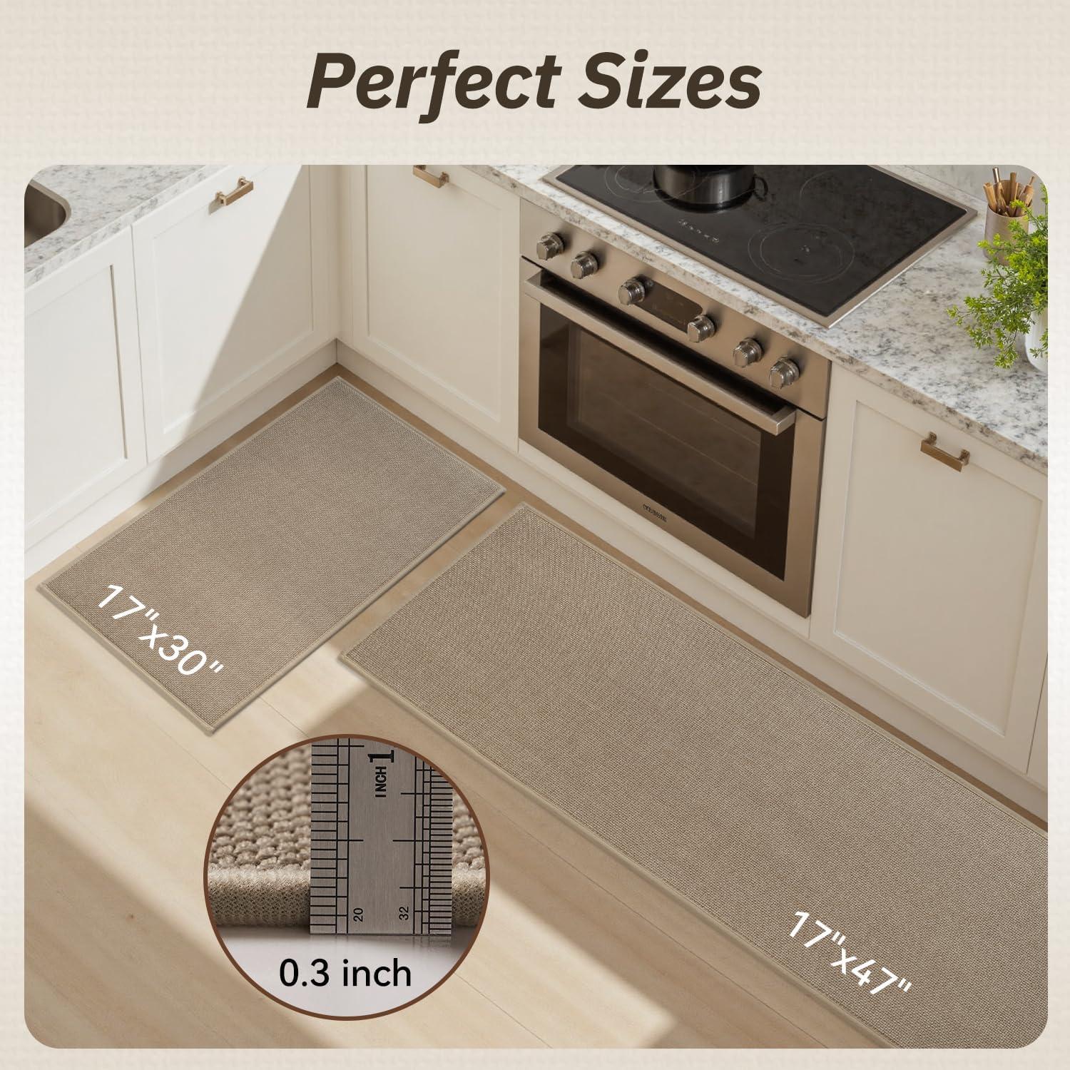 【Anti Fatigue Kitchen Mat】PVC backed kitchen rugs can bring you a comfortable feeling on your feet and moderately relieve your fatigue. Crafted from premium materials, our kitchen mats cushioned anti fatigue feature a sturdy reinforced edge that resists stains, fading, and wear. Even after frequent washing, kitchen floor mats maintain its integrity.
