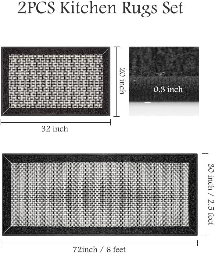 PADOOR Non Slip Kitchen Rugs Sets of 2 – Extra Large 2.5’x6′ + 20″x32″ Runner Rugs for Kitchen Floor Non Skid Washable, Absorbent Kitchen Mat for in Front of Sink 2 Piece Dark Brown(Black)
