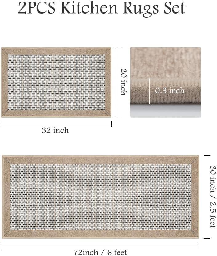 PADOOR Non Slip Kitchen Rugs Sets of 2 – Extra Large 2.5’x6′ + 20″x32″ Runner Rugs for Kitchen Floor Non Skid Washable, Absorbent Kitchen Mat for in Front of Sink 2 Piece Dark Brown(Brown)