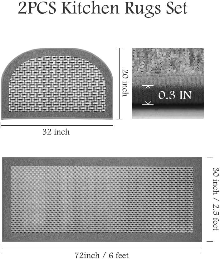 PADOOR Non Slip Kitchen Rugs Sets of 2 – Extra Large 2.5’x6′ + 20″x32″ Runner Rugs for Kitchen Floor Non Skid Washable, Absorbent Kitchen Mat for in Front of Sink 2 Piece Dark Brown(Grey – Rectangular + Semicircular)