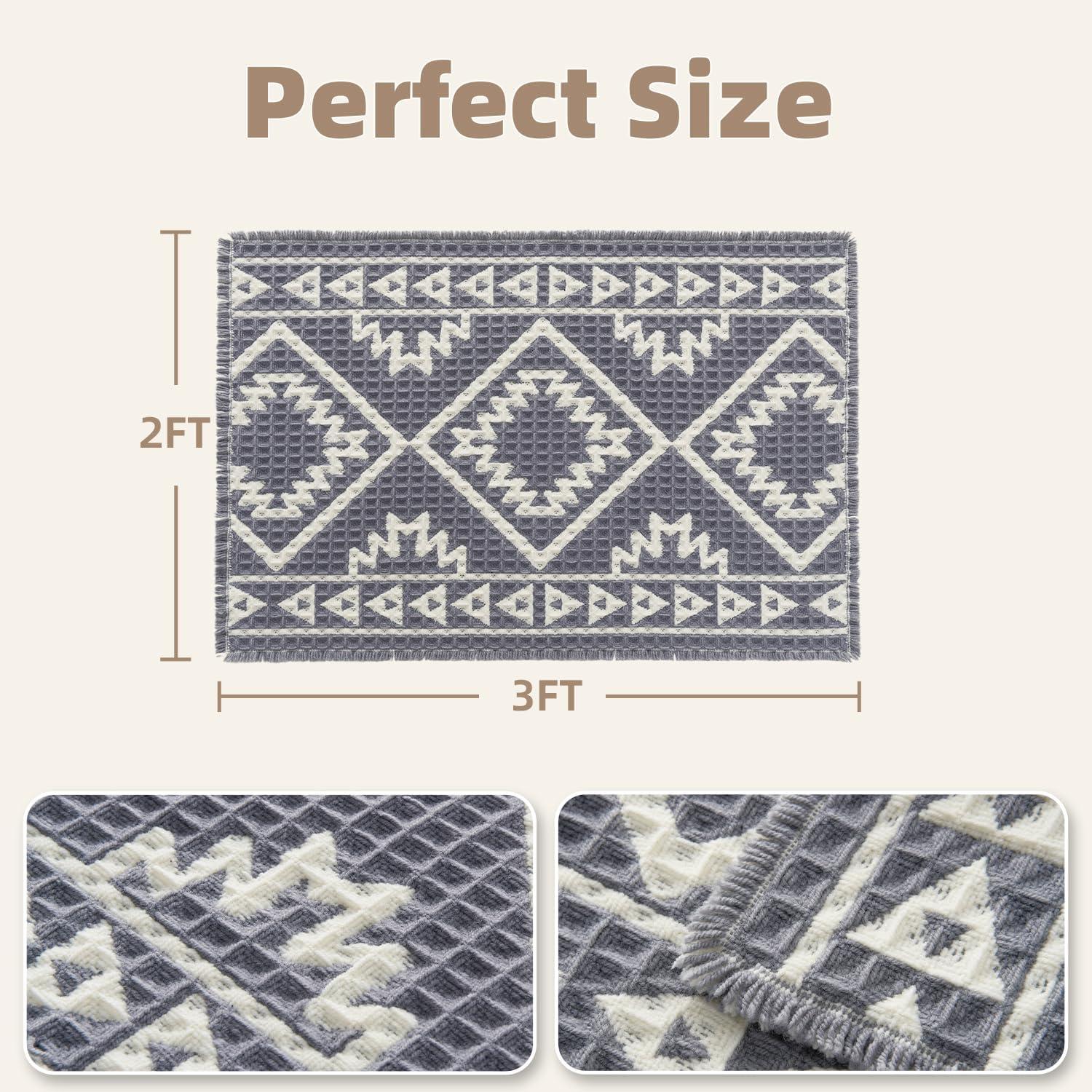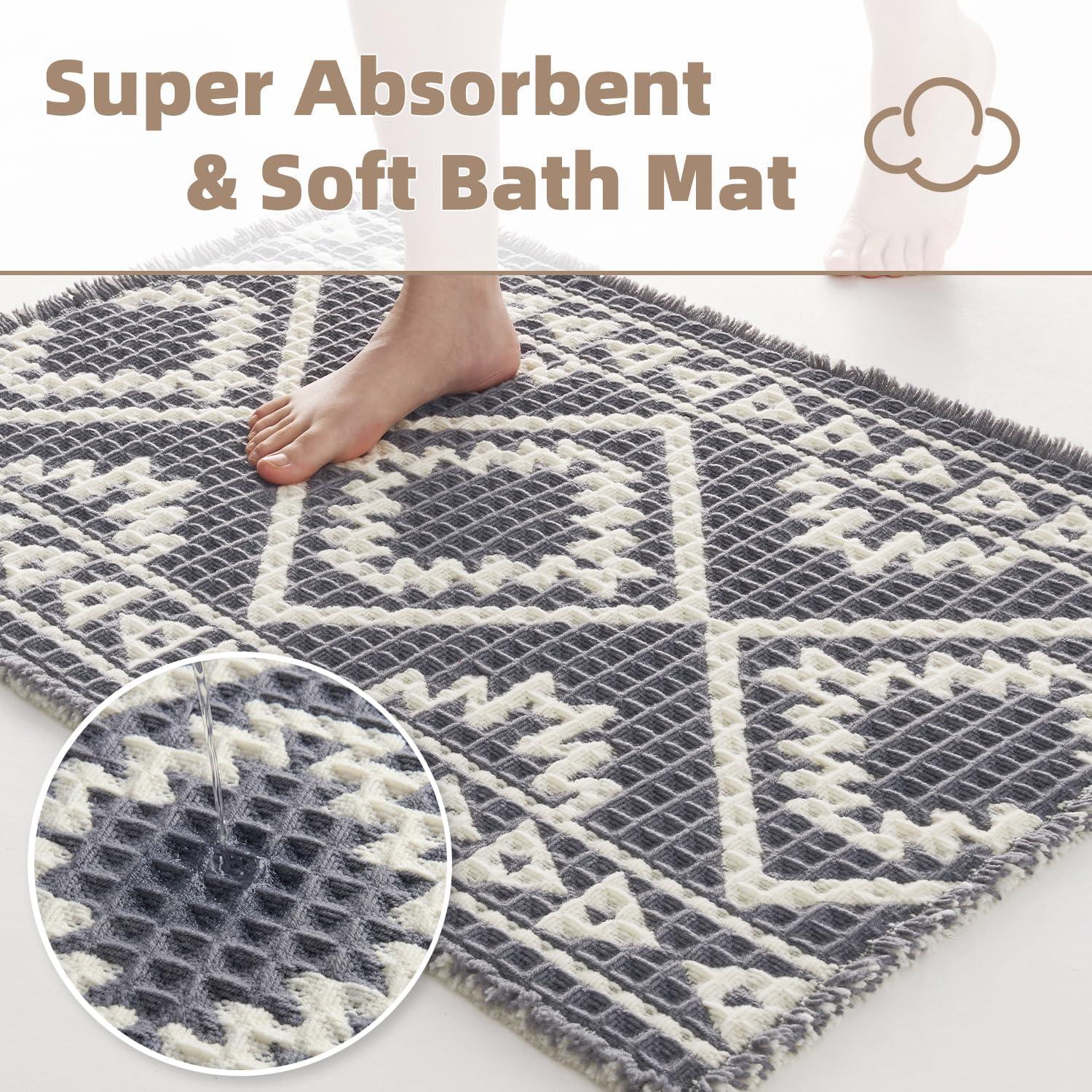Premium Waffle Bath Mat: Crafted with innovative dual-tone yarns in an extra-dense waffle weave, Moroccan bath mat delivers cloud-like softness underfoot. The elegant tassel detailing elevates your bathroom decor while the reinforced construction ensures lasting durability.